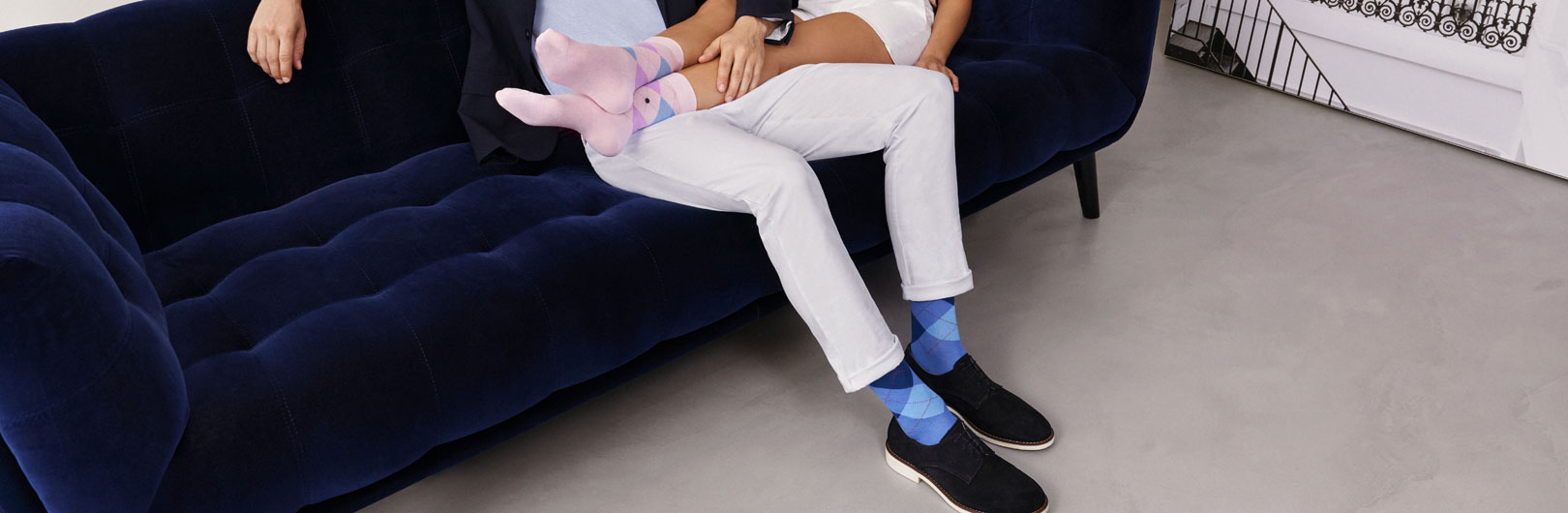 Chaussettes et bas Burlington® pour hommes et femmes avec une réinterprétation du motif argyle traditionnel.
